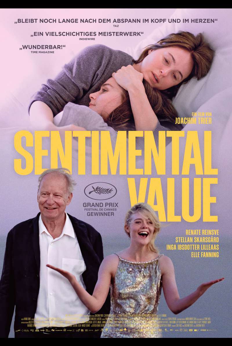 SENTIMENTAL VALUE ist ein Familiendrama von Joachim Trier. Der Film handelt von zwei Schwestern, die nach dem Tod ihrer Mutter gezwungen sind, sich mit ihrem entfremdeten Vater auseinanderzusetzen, einem einst erfolgreichen Filmregisseur, der sein Comeback plant. Der Film feierte im Mai 2025 bei den Internationalen Filmfestspielen in Cannes seine Premiere und wurde dort mit dem Großen Preis der Jury ausgezeichnet.